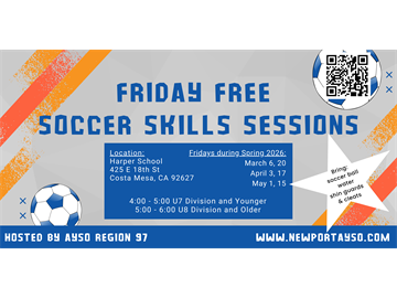We will be holding the Friday Free Soccer Skills Sessions every other Friday during the spring season. Please have your player bring a ball if they have one, water, & wear shin guards and cleats.